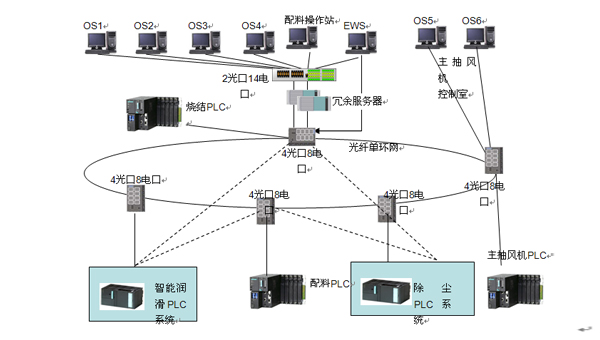 | 烧结自动控制设计原则 通过分析现代国内外同类型系统构成特点,结合**钢铁公司烧结厂具体情况,做出三电自动化系统总体构成方案。方案体现在线改造的可行性、先进性、合理性及三电一体化综合性。 采用目前先进的计算机、PLC,硬件设备采用国外设备,保证使用的可靠性,在选型、订货上既要考虑与现有设备的接口,又要考虑国内维修、备件及支持服务培训方面的条件。 充分吸收多年的工程经验,设计开发新系统,满足公司今后新技术开发、生产管理和信息管理的需要,同时考虑以后系统的扩展和升级便利。 制定好项目的整体方案和实施计划。 烧结自动控制三电功能 烧结自动化系统由计算机、仪表控制、电气控制组成,三电系统功能分配如下: 计算机通过通讯装置采集生产过程数据、对数据进行加工处理、输出控制命令。其主要功能为铁水、废钢等信息收集;静态、动态吹炼控制;生产计划管理;报表打印等。 仪表系统主要功能是对各种参数(压力、温度、流量、物位、成分等)进行检测与控制;原料等物理量的称量。 电气系统用于各种泵站控制;皮带输送控制;原料装入控制;烧结机及圆棍给料机控制及环冷机三机联调安全联锁保护等。 根据转炉生产工艺和操作的要求,整个过程自动化系统拟采用现行成熟的计算机控制系统。基础级以PLC和HMI为核心, 使用网络技术构成基于控制器的分布式控制系统,完成电气传动控制、仪表过程控制,从而实现“三电”信息共享,各系统协调配合,共同完成对过程的自动控制、监视和管理。 烧结自动控制系统的主要功能 烧结自动控制系统主要有以下关键过程: 燃料上料及破碎系统; 配料、混合系统; 制粒系统; 烧结、带冷筛分、返矿及成品系统; 机头除尘系统; 机尾除尘系统; 配料布袋除尘系统; 燃料布袋除尘系统; 铁料上料系统; 主抽风机系统 烧结自动控制网络拓扑图 ![]() 烧结自动控制系统特点 主工艺线的电控设备、仪表设备要与控制计算机构成统一信息集中,控制分散的EIC一体化系统; 系统采用计算机分级控制,基础自动化级(设备级的自动控制)、过程自动化级(监控级),建立生产过程数据库和历史数据记录,为提高生产技术创造条件; 自动化系统采用开放式结构,具有良好的可扩展性; 整个自控系统以全自动操作为重点,但在设计上充分考虑CRT手动等各种后备手段以保证各种情况下生产的正常进行。 仪表和电控设备(IE设备)一体化,以使维护方便、设备最少; 低成本自动化(LCA),即基础自动化级采用功能强大的西门子公司的S7414-2系列PLC控制系统,过程级采用研华工控机,后者且采用通用的支持软件,功能紧凑和有效; |